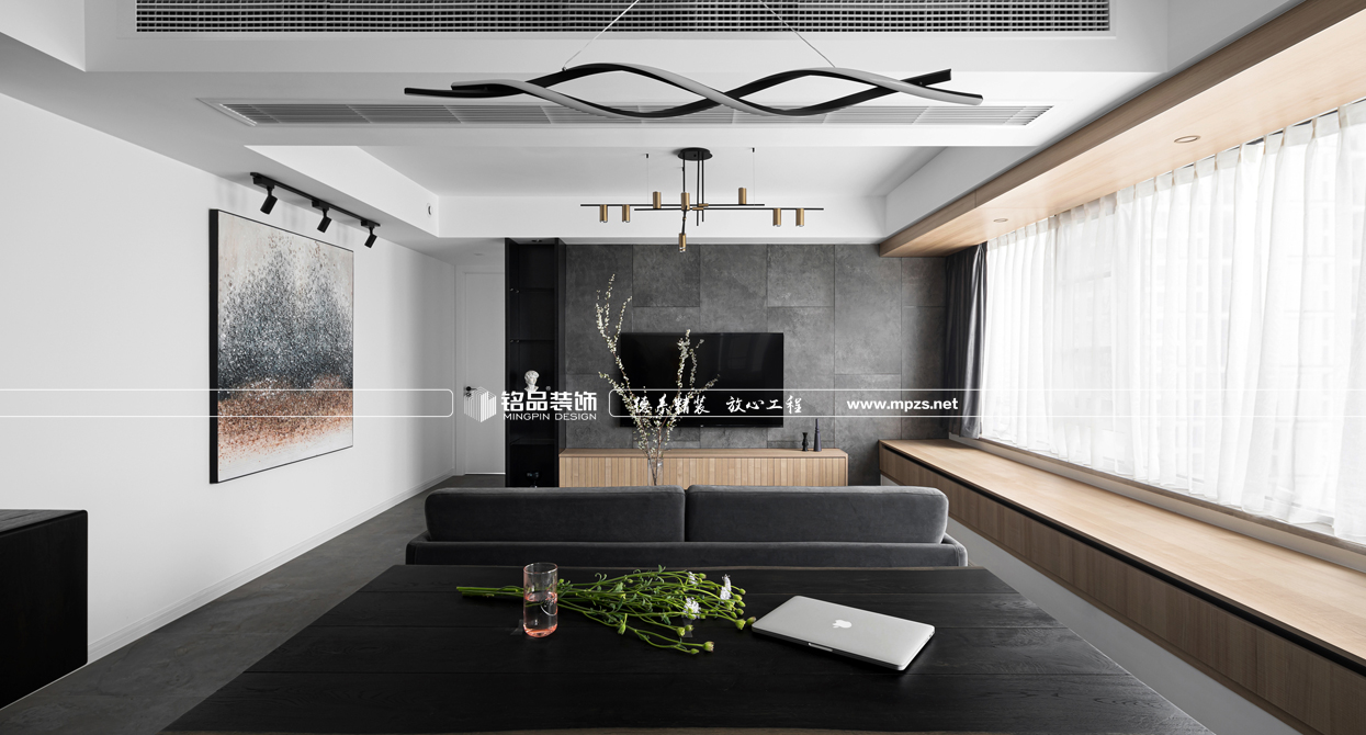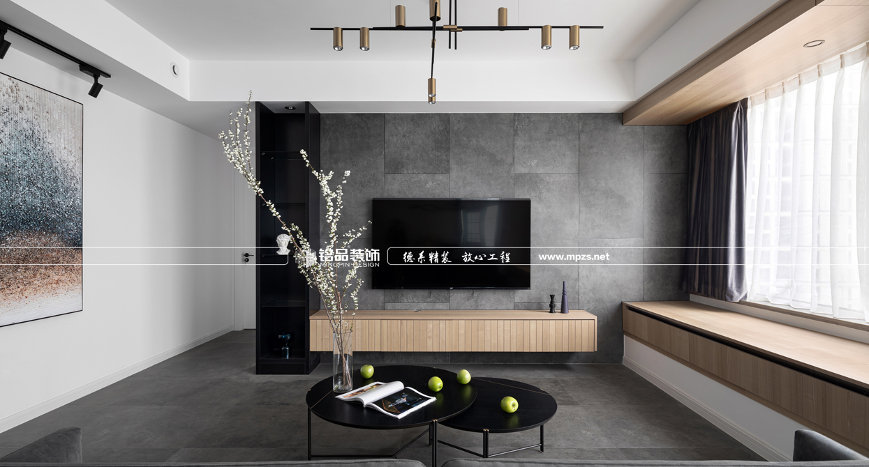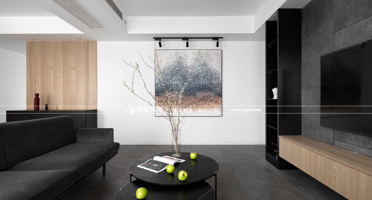 本案整体以黑白灰为主色介入,降低房子对业主生活的喧宾夺主,大面的水泥砖以及背景的延伸带来的空间感,和适当的木色找回大自然的本真色彩,家具的选择也降低了对颜色的追求,还原本屋的真实感。留取空间的最大给到业主去添加的生活情愫色彩。